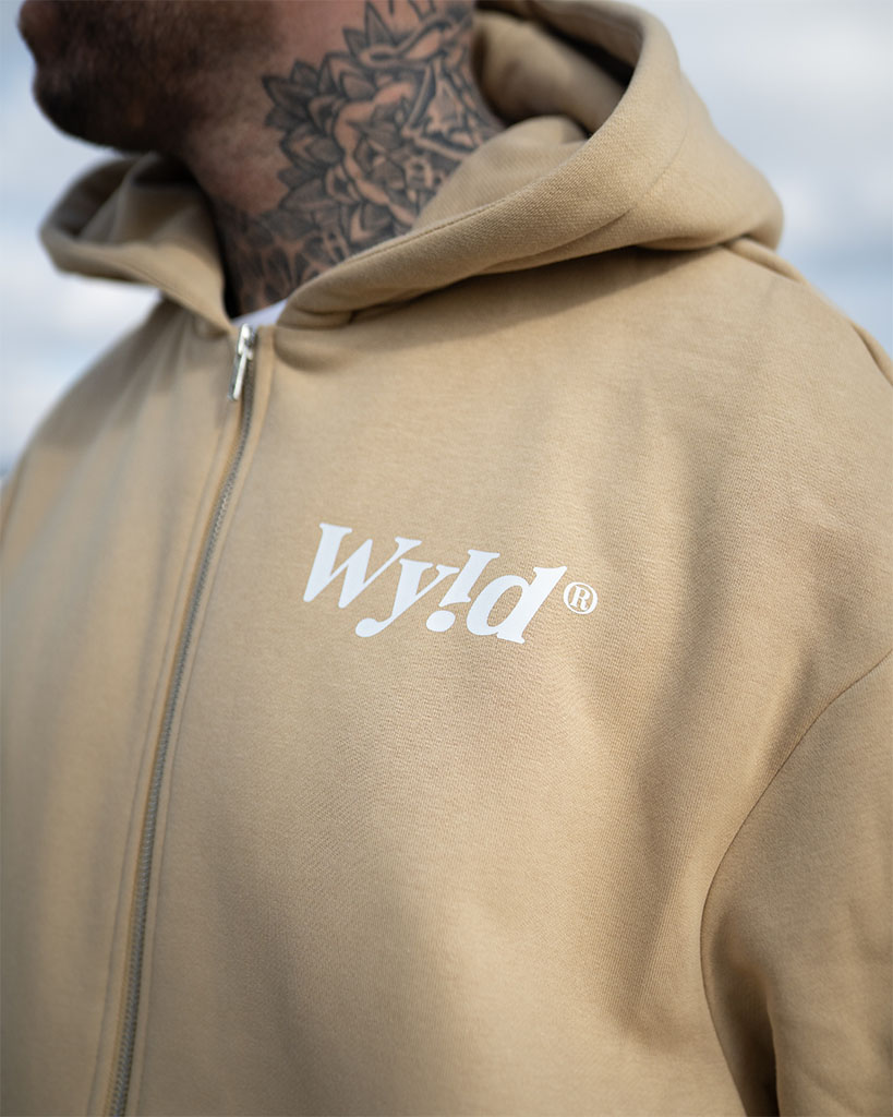 Lässiger Zip Hoodie im Oversized Look mit kleinem Frontprint links auf der Brust und großem Backprint.
